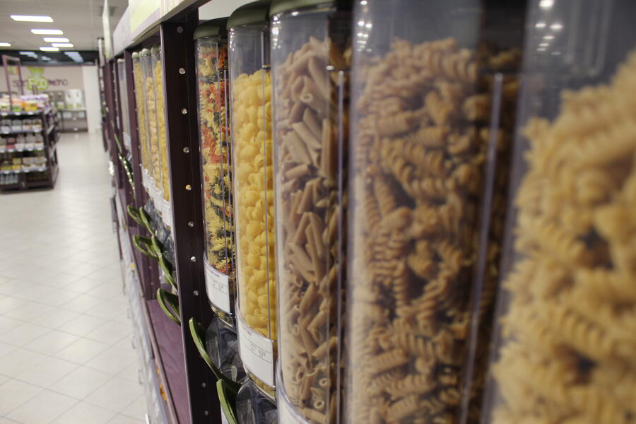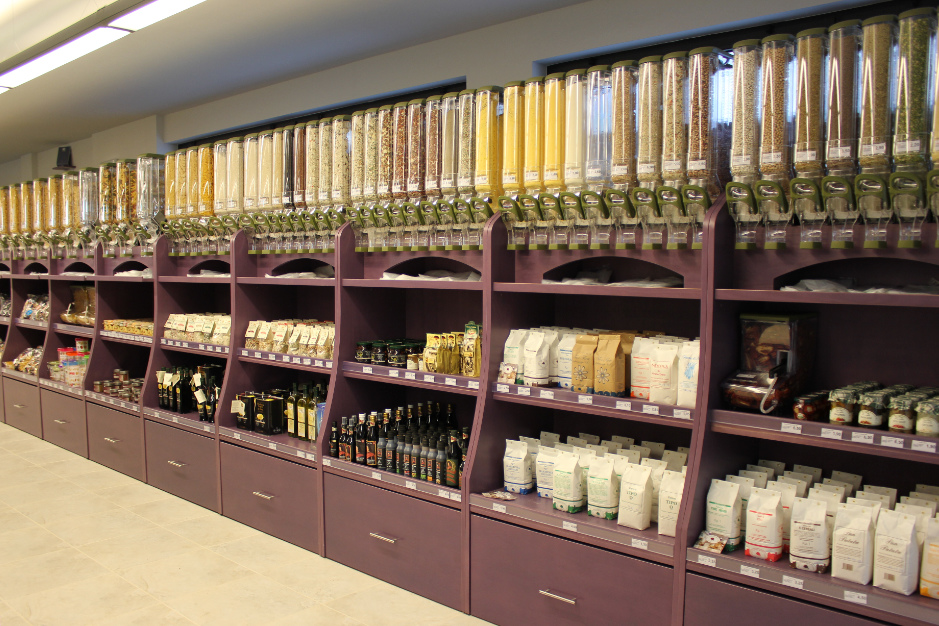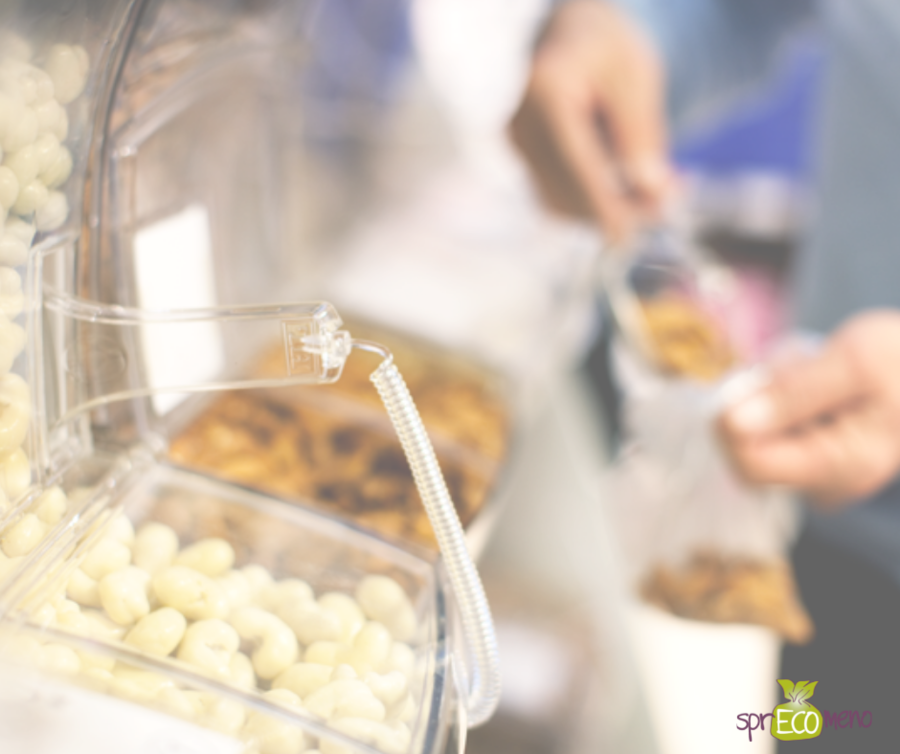 I prodotti sfusi vengono conservati in appositi dispenser ed erogatori, i quali mantengono il prodotto intatto e permettono al cliente di servirsi da solo nel rispetto dell'igiene e della sicurezza del prodotto.